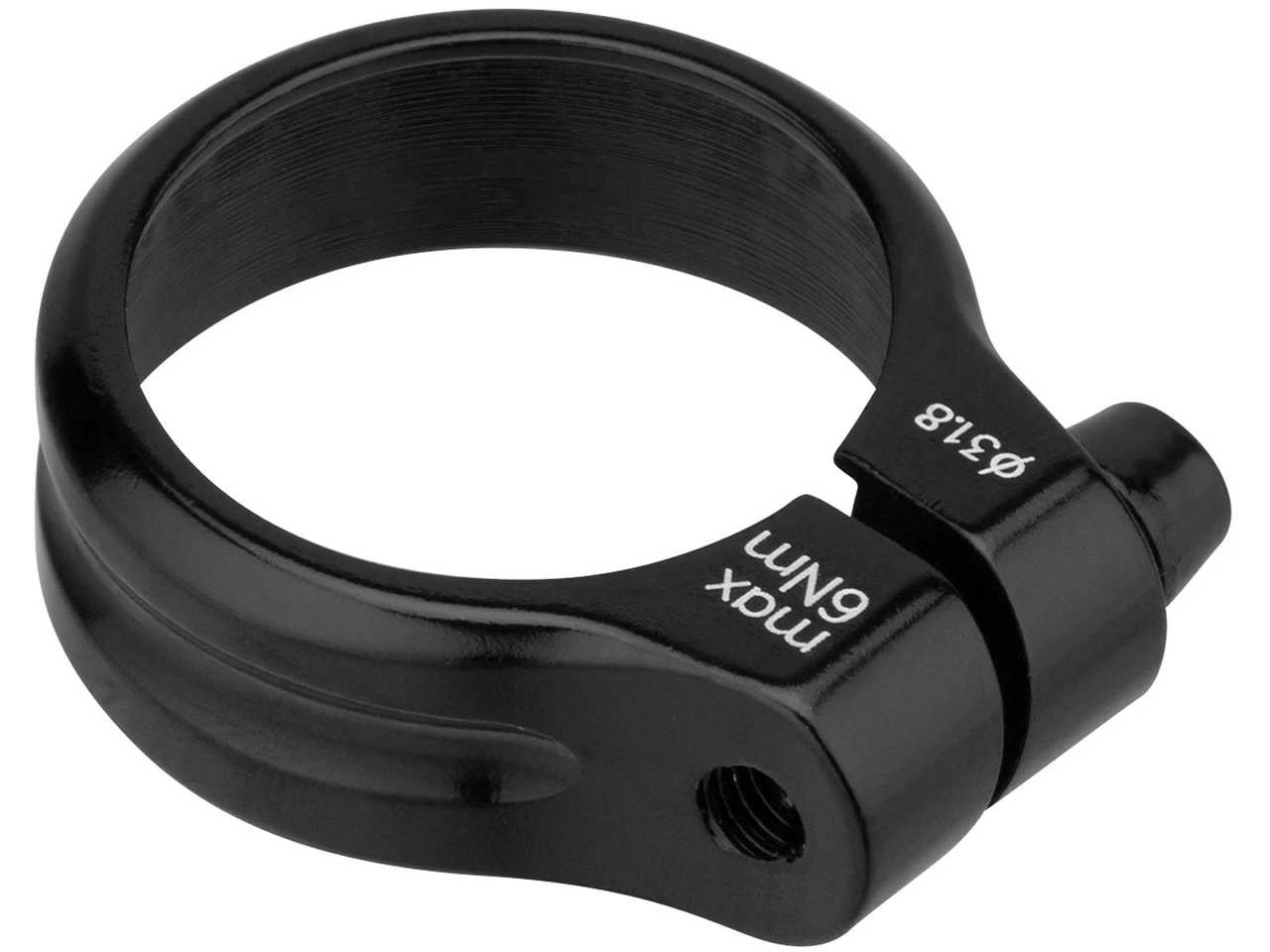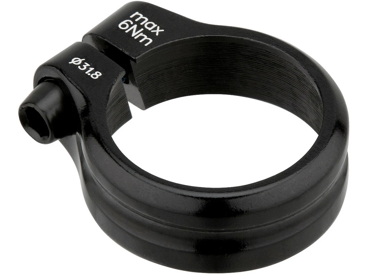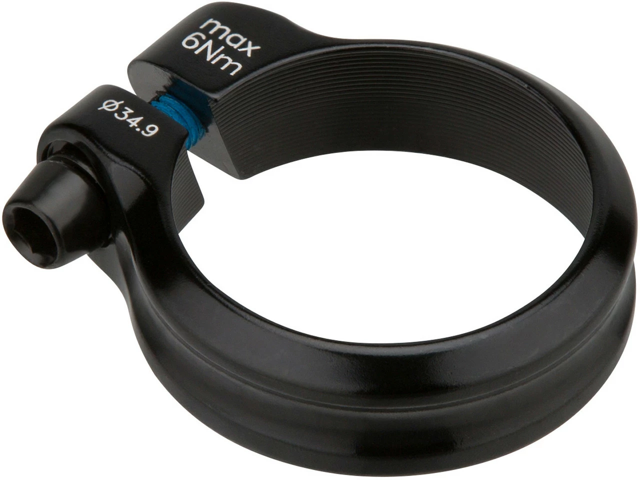 Die Sattelklemme von 3min19sec wird mit einer Innensechskantschraube geklemmt. Sie überzeugt durch ihr schlichtes Design und bringt mit 13 g kaum Mehrgewicht an Dein Rad. Die Klemme besteht aus Aluminium und ist 13 mm hoch. In klassischem Schwarz gehalten, lässt sie sich sowohl für Mountainbikes wie für Rennräder wie für Trekkingbikes verwenden. Du hast die Wahl zwischen einer Ausführung für den Sattelrohr-Durchmesser 31,8 mm und einer Version für 34,9 mm. Ziehe die Schraube mit maximal 6 Nm an.