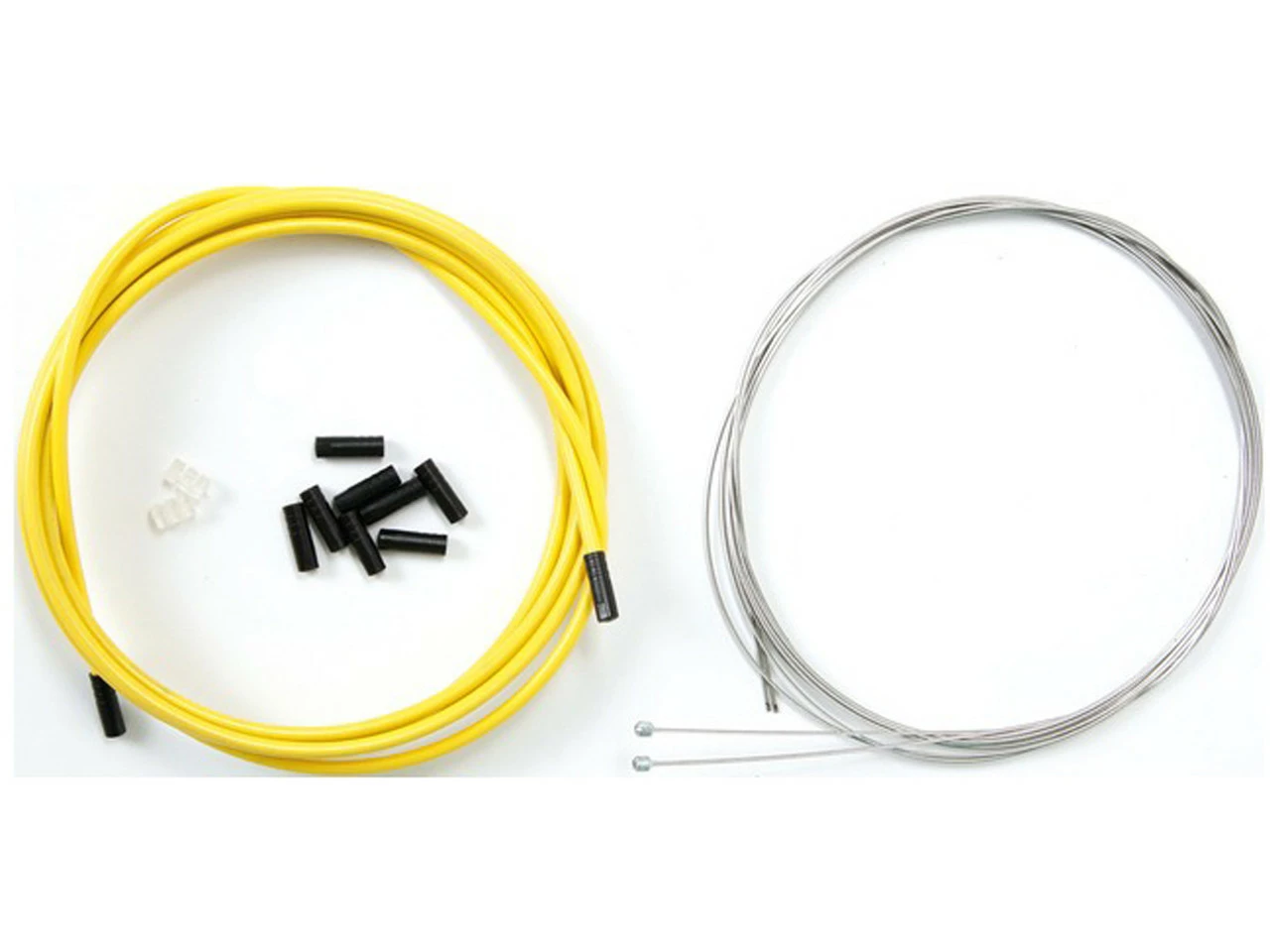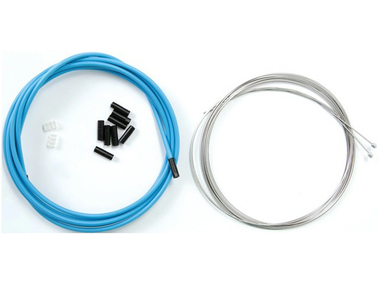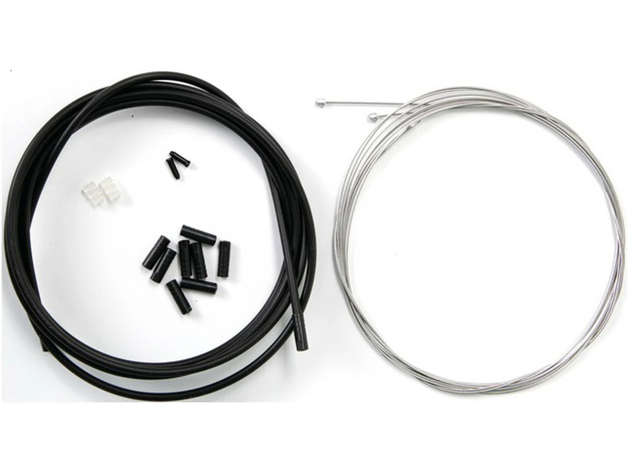 Komplettes Schaltzugset mit zwei Innenzügen, Außenhülle, Anschlag- und Endhülsen sowie O-Ringen.