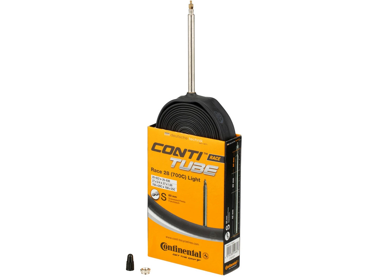 Bezeichnungen/Synonyme: Sclaverand-Ventil (SV), Französisches Ventil, Presta-VentilAußendurchmesser: 6,5 mmSonstiges: Bei allen Continental-Schläuchen mit SV-Ventil ist das Ventil abschraubbar (Ventilverlängerung, Befüllen mit Antiplatt-Mitteln etc.).Lieferumfang:1 x Schlauch Continental Race 28 Light