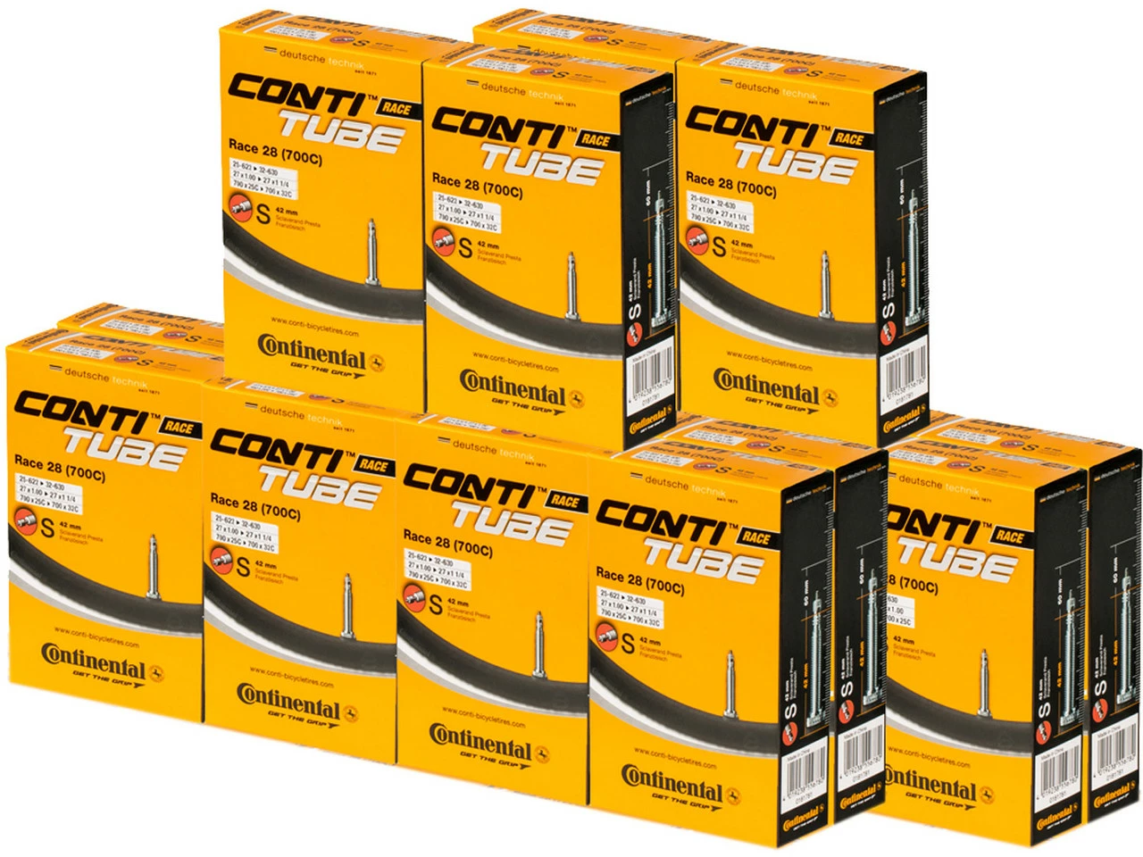 Bezeichnungen/Synonyme: Sclaverand-Ventil (SV), Französisches Ventil, Presta-VentilAußendurchmesser: 6,5 mmSonstiges: Bei allen Continental-Schläuchen mit SV-Ventil ist das Ventil abschraubbar (Ventilverlängerung, Befüllen mit Antiplatt-Mitteln etc.).Lieferumfang:20 x Schlauch Continental Race 28 Wide