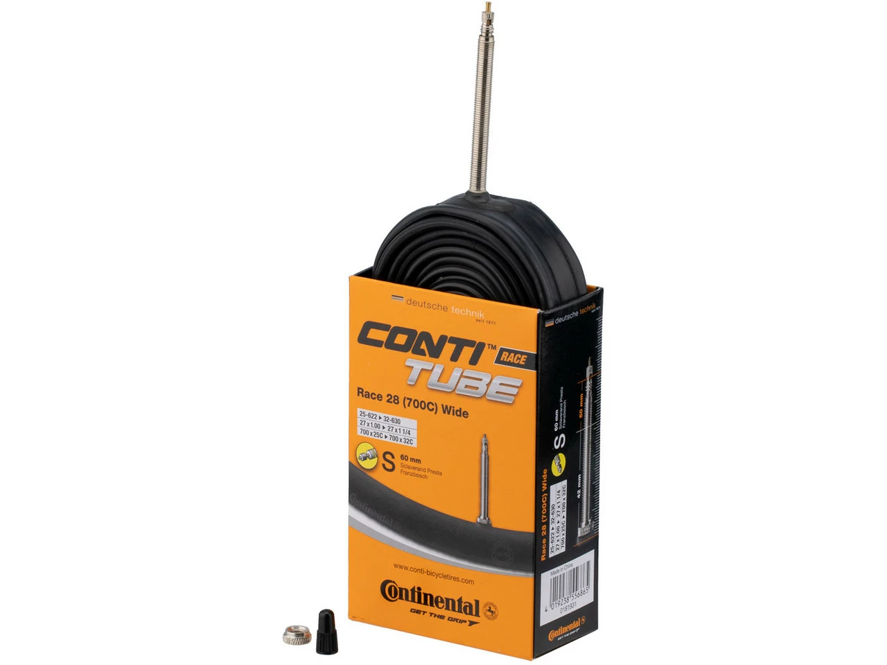 Bezeichnungen/Synonyme: Sclaverand-Ventil (SV), Französisches Ventil, Presta-VentilAußendurchmesser: 6,5 mmSonstiges: Bei allen Continental-Schläuchen mit SV-Ventil ist das Ventil abschraubbar (Ventilverlängerung, Befüllen mit Antiplatt-Mitteln etc.).Lieferumfang:1 x Schlauch Continental Race 28 Wide