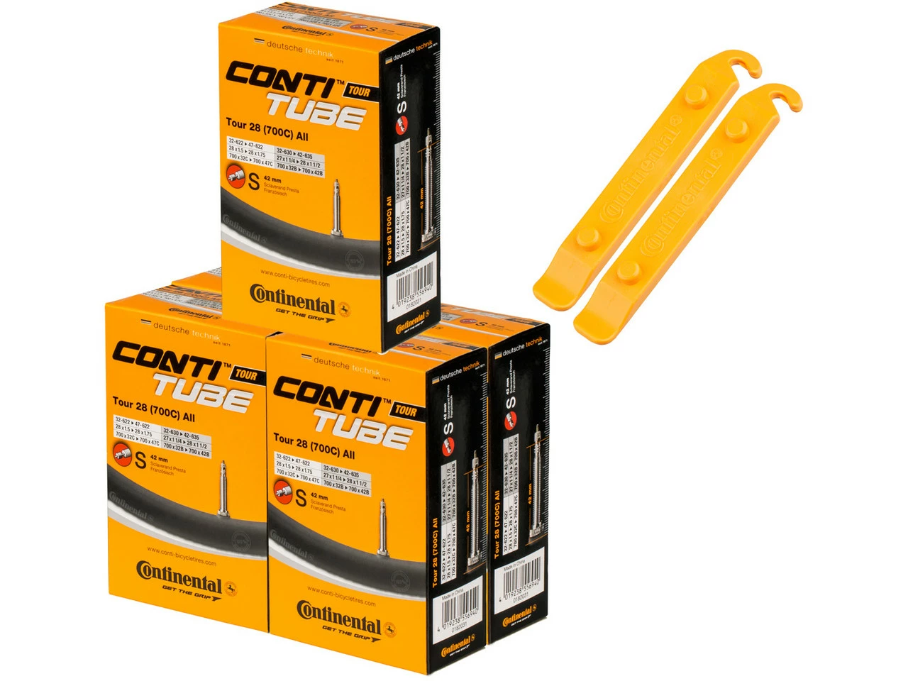 Bezeichnungen/Synonyme: Sclaverand-Ventil (SV), Französisches Ventil, Presta-VentilAußendurchmesser: 6,5mmSonstiges: Bei allen Continental-Schläuchen mit SV-Ventil ist das Ventil abschraubbar (Ventilverlängerung, Befüllen mit Antiplatt-Mitteln etc.).Lieferumfang:5 x Schlauch Continental Tour 28 All2 x Reifenheber Continental MTB/Tour