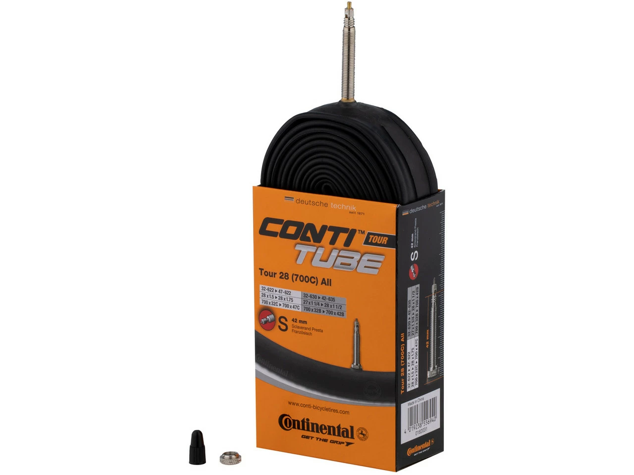 Bezeichnungen/Synonyme: Dunlop-Ventil (DV), Blitzventil, Normalventil (NV)Außendurchmesser: 8,5 mmLieferumfang:1 x Schlauch Continental Tour 28 All