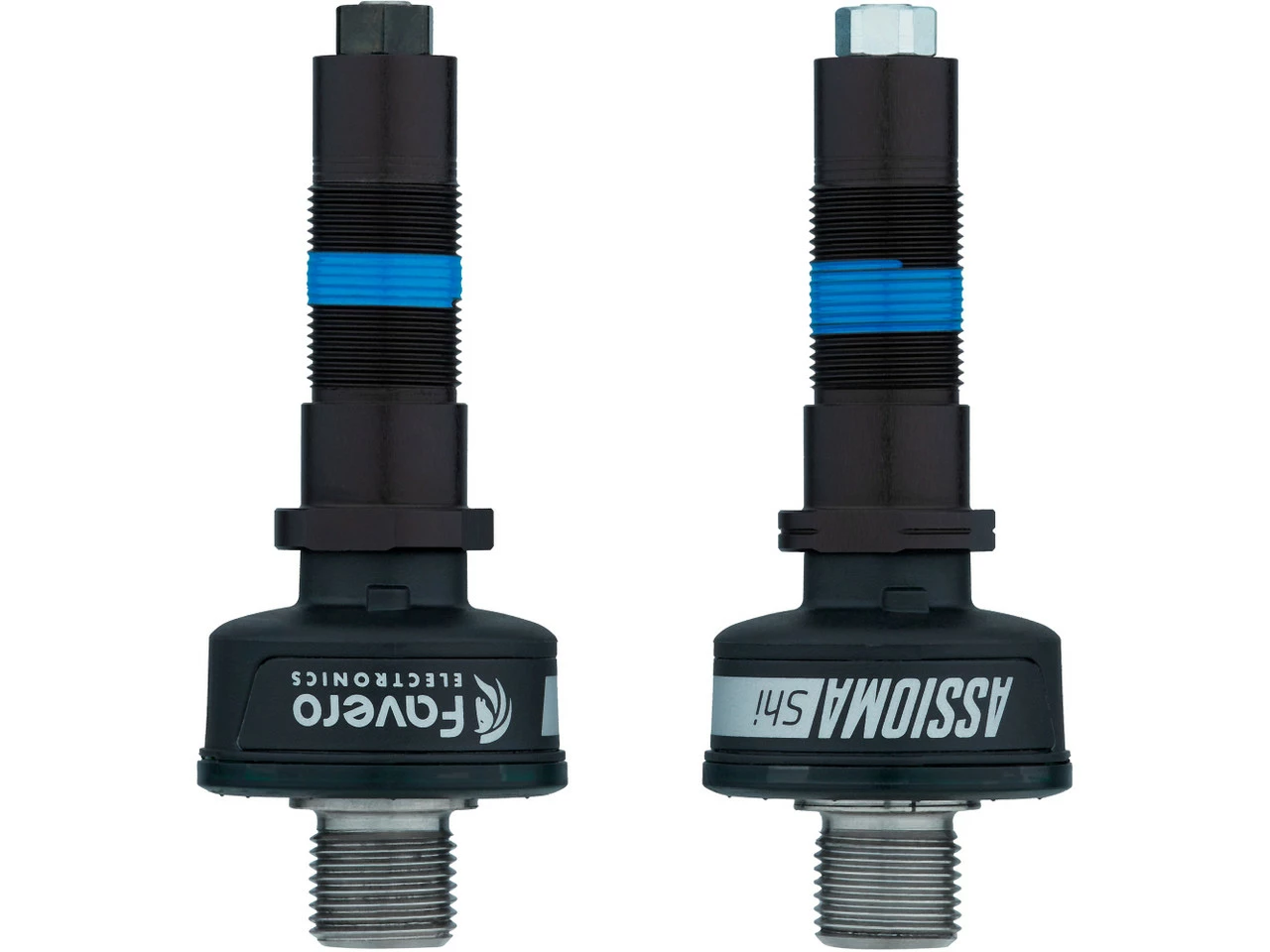 Das Assioma DUO-Shi Powermeter Pedalachsenkit von Favero umfasst eine rechte sowie eine linke Achse, die mit bestimmten Shimano SPD-SL-Pedalkörpern kompatibel sind und jeweils mit einem Leistungsmesser ausgestattet wurden. So kommen auch Nutzer des PD-R8000 und weiterer Shimano Pedale in den Genuss der hochgradig exakten, beidseitigen Wattmessung, die sich an den Look-kompatiblen Pedalen von Favero seit Langem bewährt hat. Du kannst damit nicht nur Deine Leistung, die Links-Rechts-Balance und den runden Tritt überprüfen, das Kit eröffnet darüber hinaus einen Zugang zu weiteren Aspekten der Leistungsentwicklung, den sogen. IAV Cycling Dynamics. Dank eines eingebauten Gyroskopen arbeiten die Powermeter-Pedalachsen auch dann zuverlässig, wenn Du ovale Kettenblätter benutzt. Assioma DUO-Shi punktet außerdem mit schneller, einfacher Montage, ANT+- und Bluetooth-Drahtlos-Technik sowie automatischer Temperaturkompensation.