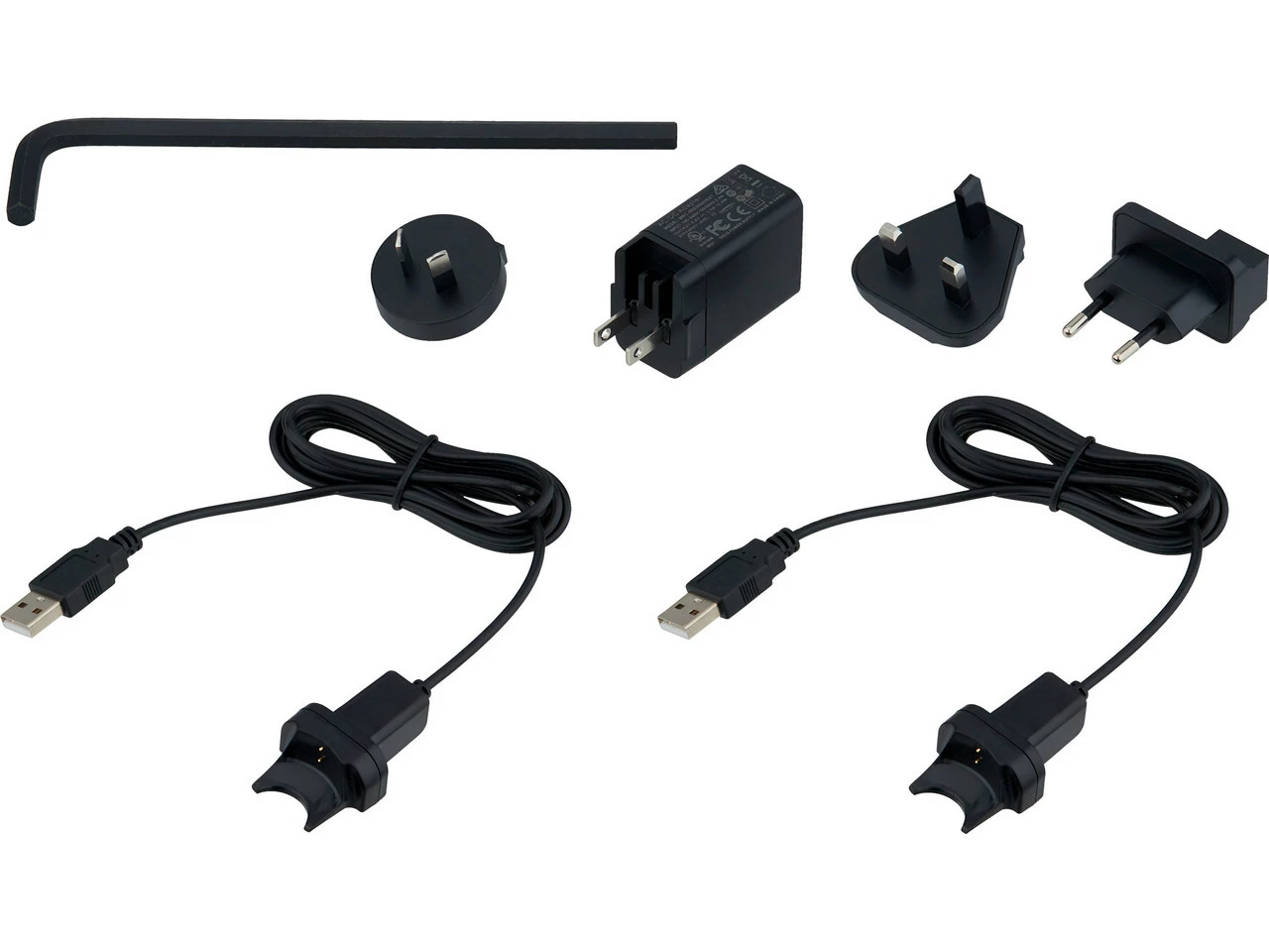 Lieferumfang:1 x Pedalachse Favero Assioma DUO-Shi mit Sensor / Powermeter, links1 x Pedalachse Favero Assioma DUO-Shi mit Sensor / Powermeter, rechts2 x USB-Kabel mit Mikro-USB-Stecker und Magnetsteckverbinder, 2 m1 x Ladegerät1 x Stecker-Adapter EU1 x Stecker-Adapter US1 x Stecker-Adapter UK1 x Stecker-Adapter AU1 x Innensechskantschlüssel4 x Unterlegscheibe