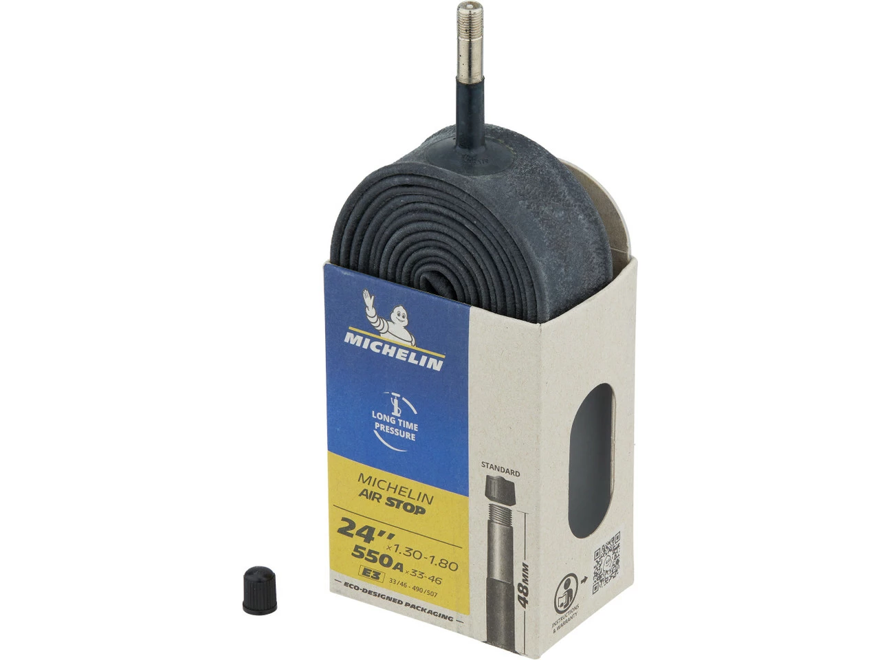 Spezifikationen:Einsatzbereich:KidsETRTO:33-490 bis 46-507Reifendimension:24 x 1,3 bis 24 x 1,8Schlauchmaterial:ButylVentilart:SV 48 mm, AV 48 mmVentilinformationFahrradschläuche sind mit unterschiedlichen Ventilarten erhältlich.