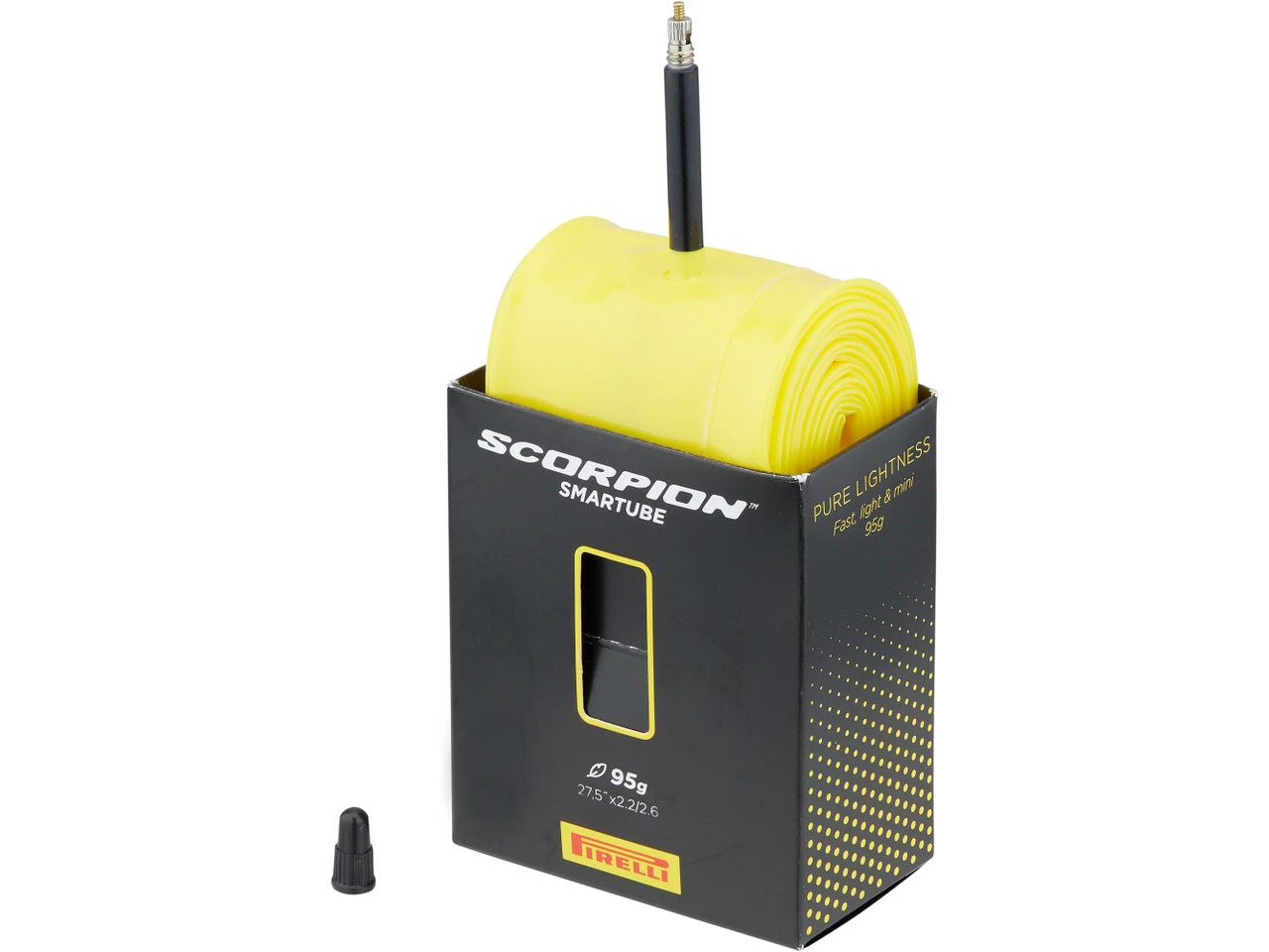 Der Pirelli Scorpion SmarTube Schlauch 27,5″ besteht aus einem thermoplastischen Polyurethan (TPU), was ihn sehr leicht, kompakt und robust macht.