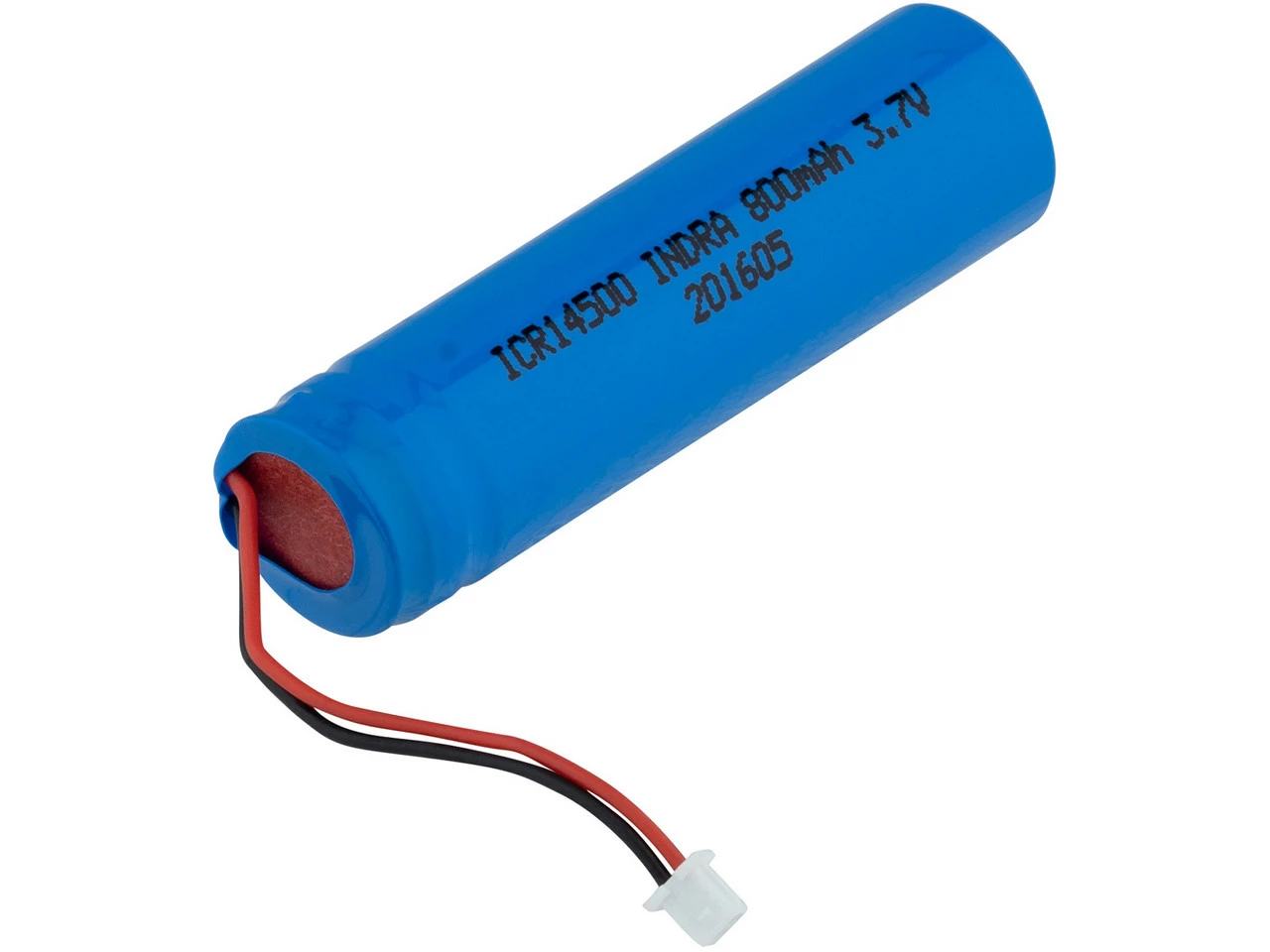 Spezifikationen:Bezeichnung:ICR14500 3.7V 800mAh batteryGefahrbestimmende Komponenten:Mangandioxid 29 %, Acetylenruß 6 %, Lithiummetall 3 %, Elektrolyt 6 %, Blei =0,001 %, Quecksilber =0,0001 %, Cadmium =0.001 %