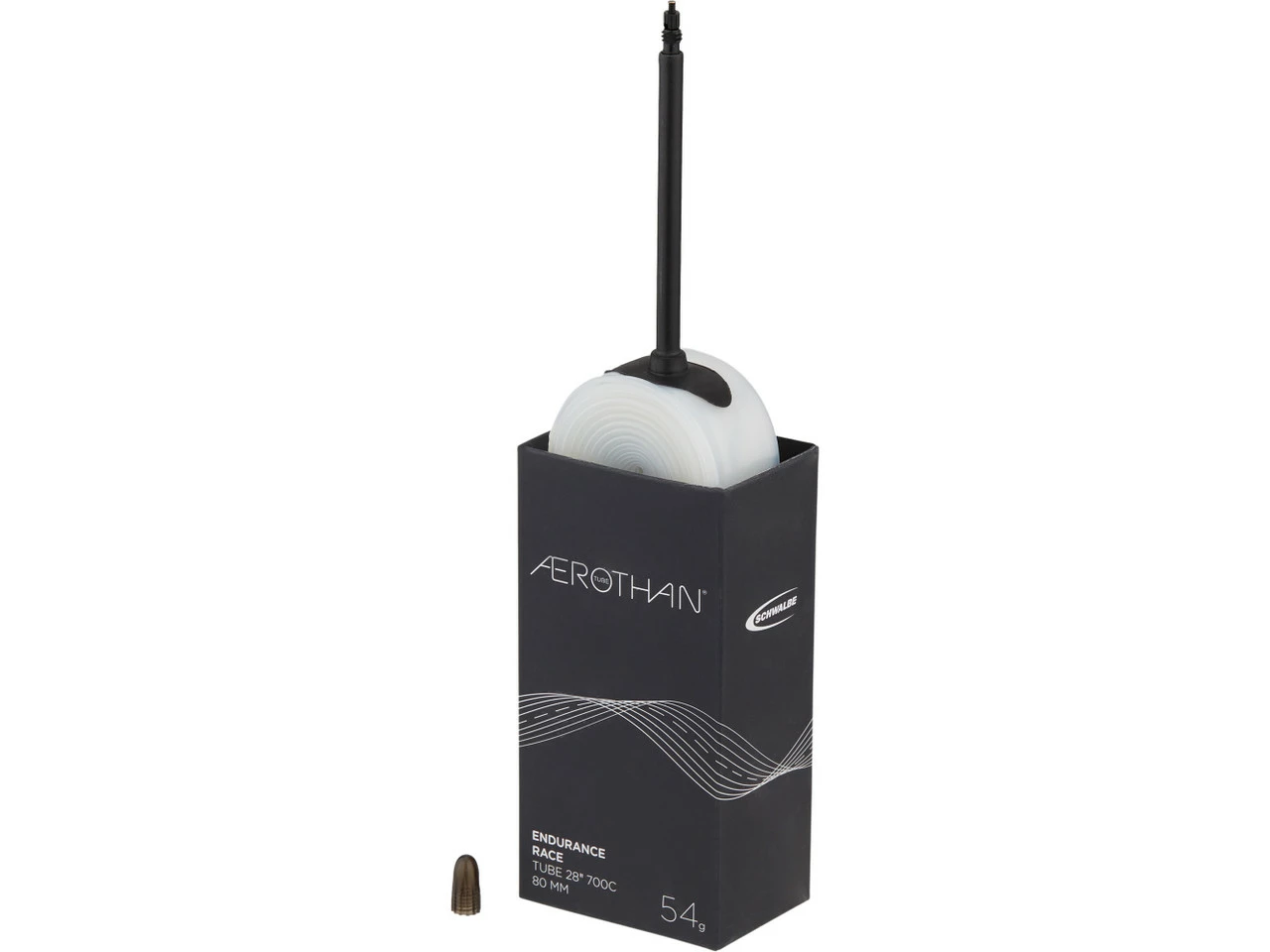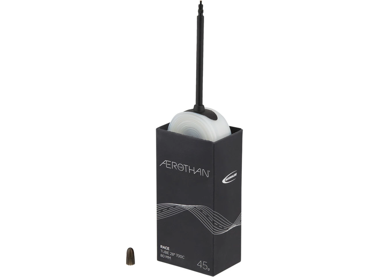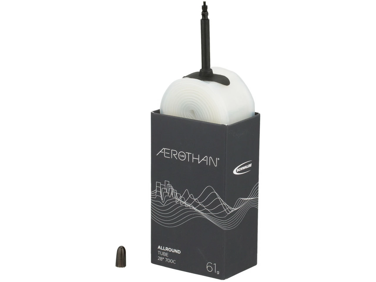 Der Aerothan Schlauch von Schwalbe für 28″ Reifen kombiniert optimale Pannensicherheit, niedriges Gewicht und minimalen Rollwiderstand für Dein Rennrad, City- oder Touringbike. Er ist sehr hitzebeständig, sodass er für Felgenbremsen gut geeignet ist. Selbst bei niedrigem Luftdruck bleibt er stabil.