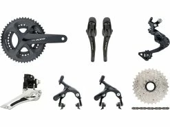 1 x Kurbelgarnitur Shimano 105 (FC-R7000)1 x Schaltwerk Shimano 105 (RD-R7000)1 x Umwerfer Shimano 105 (FD-R7000)1 Paar Schalt-/Bremsgriffe Shimano 105 STI 2-/11-fach (ST-R7000)1 Paar Felgenbremsen Shimano 105 (BR-R7000)1 x Kassette Shimano 105 (CS-R7000)1 x Kette Shimano 105 / SLX Quick-Link (CN-HG601-11)1 x Kurbelschraube Shimano1 x Außenhülle Shimano OT-RS900 240 mm1 x Endkappe verlängert für Schaltwerk1 x Schaltzug Shimano 1800 mm1 x Schaltzug Shimano 2100 mm2 x Bremszug2 x Bremszugaußenhülle3 x Schaltzugaußenhülle6 x Montage-Gelenkmutter für Felgenbremse2 Paar Bremsbeläge R55C41 x Kassetten-Abschlussring Shimano Stahl1 x Kettenschloss Shimano SM-CN900-11 Quick-Link