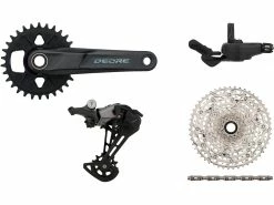 1 x Kurbelgarnitur Shimano Deore (FC-M6100-1) 30 Zähne1 x Schaltwerk Shimano Deore Shadow Plus (RD-M6100)1 x Schaltgriff Shimano Deore (SL-M6100)1 x Kassette Shimano Deore (CS-M6100-12)1 x Kette Shimano CN-M61001 x Abschlussring Shimano Stahl1 x Kettenschloss Shimano Quick-Link1 x Innenzug Shimano (2050 mm)1 x Außenhülle Shimano (1880 mm)3 x Endkappe 6 mm gedichtet1 x Endkappe verlängert