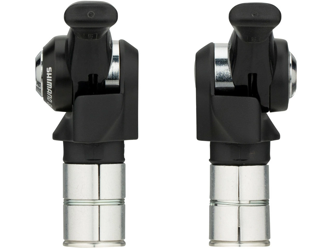 Die Shimano Dura-Ace SL-BSR1 Schalthebel sind Lenkerendschalthebel, die zur 9000er Gruppe gehören. Sie bieten die bewährte Präzision der Shimano Indexschaltung für Zeitfahrräder mit 2×11-fach Antrieb. Die formschönen Hebel wurden aus Aluminium gefertigt und kommen mit einem Klarlack-Finish. Die mitgelieferten Schaltzüge verfügen über die sogen. SIL-TEC Beschichtung, mit der eine glatte Funktion befördert und Verschleiß vorgebeugt wird.