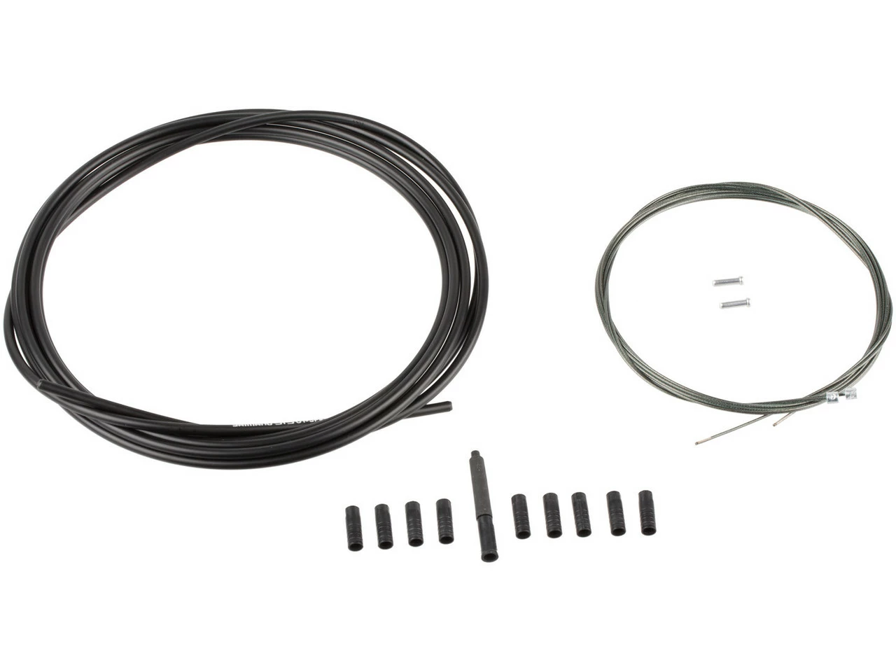 Lieferumfang:1 x Schaltzugaußenhülle Shimano OT-SP411 x Schaltinnenzug Shimano Optislick 2100 mm1 x Schaltinnenzug Shimano Optislick 1800 mm9 x Außenzugtülle Shimano Kunststoff, gedichtet1 x Außenzugtülle Shimano, gestuft1 x Gummimanschette2 x Innenzug-Endkappe