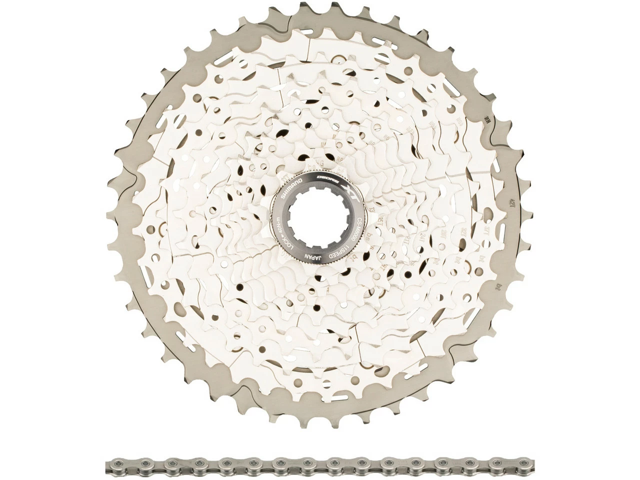 Spezifikationen:Serie:Deore XT M8000Einsatzbereich:Cross Country, All MountainSchaltung:11-fach (mechanisch)Technische Daten Kassette:Typ:Deore XT CS-M8000 (HG)Schaltstufen:11-fachAbstufungen:11-42 Z (11-13-15-17-19-21-24-28-32-37-42 Z), 11-46 Z (11-13-15-17-19-21-24-28-32-37-46 Z)Material Ritzel:Stahl, Aluminium (Ritzel 11 bei 11-42 Z, Ritzel 10+11 bei 11-46 Z)Freilaufkompatibilität:Shimano MTBHinweis:mit 1,85 mm Distanzring kompatibel zu Shimano Road 11-fachSpider / Ritzelträger:2 (Aluminium)Technische Daten Schaltwerk:Typ:Deore XT RD-M8000 kurz/mittellang (GS)Befestigung:Standard (Direct Mount kompatibel)Kapazität:39 ZähneMax. Zähne größtes Ritzel:42 Zähne bei 2×11-fach, 46 Zähne bei 1×11-fachMin. Zähne größtes Ritzel:40 ZähneMax. Zähne kleinstes Ritzel:11 ZähneMin. Zähne kleinstes Ritzel:11 ZähneMax. Differenz vorne:10 ZähneKompatibilität:Shimano MTB 11-fachKompatible Kette:HG-X11Schalträdchen:11 ZähneMaterial äußerer Käfig:AluminiumMaterial innerer Käfig:AluminiumMaterial weitere Bauteile:Edelstahl, Aluminium, Kunststoff (GFRP), StahlTechnische Daten Kette:Typ:Ultegra / XT CN-HG701-11 (HG-X11)Gliederzahl:116Verschlussart:Kettenschloss (Quick-Link)Nietentyp:chrombeschichtet, massivLaufrichtungsgebunden:JaMaterial:StahlTechnische Daten Schaltgriff:Typ:Deore XT SL-M8000 oder SL-M8000-B-I oder SL-M8000-I (Rapidfire Plus)Montage:Klemmschelle (geschlossen) oder I-Spec I (B) oder I-Spec IIMaterial Gehäuse:AluminiumMaterial Hebel:Aluminium (Haupthebel), Kunststoff/GFRP, Stahl (Lösehebel)Innenzug:Edelstahl (Optislick)Außenhülle:OT-SP41Optische Ganganzeige:Ja, bei Klemmschelle (abnehmbar; dann durch beiliegende Abdeckung ersetzen)Einstelloptionen:Zugeinstellung, Positionseinstellung (nur bei I-Spec-Versionen), Rotationseinstellung (nur bei I-Spec II)Features:Instant Release, Multi Release (Ziehen: eine Stufe, Drücken: zwei Stufen), 2-Way ReleaseLieferumfang:1 x Kassette Shimano XT CS-M80001 x Schaltwerk Shimano XT RD-M8000 Shadow+ kurz1 x Kette Shimano Ultegra / XT CN-HG7011 x Schaltgriff Shimano XT SL-M8000 oder SL-M8000-B-I oder SL-M8000-I (rechts)1 x Innenzug Shimano 2050 mm1 x Außenhülle Shimano 1880 mm1 x Abdeckung für optische Ganganzeige (nur bei Klemmschellen-Version)1 x Kassetten-Abschlussring Shimano Aluminium1 x Kettenschloss Shimano SM-CN900-11 Quick-Link3 x Endkappe Shimano gedichtet 6 mm1 x Endkappe Shimano verlängert