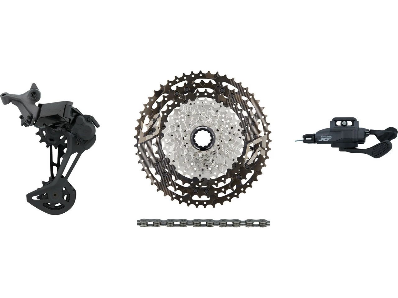 1 x Kassette Shimano CS-LG600-111 x Schaltwerk Shimano XT RD-M8130 Shadow+1 x Kette Shimano CN-LG500 mit 116 oder 126 oder 138 Gliedern1 x Schaltgriff Shimano XT SL-M81301 x Innenzug Shimano 2050 mm1 x Außenhülle Shimano 1880 mm3 x Endkappe Shimano gedichtet 6 mm1 x Endkappe Shimano verlängert1 x Kassetten-Abschlussring Shimano1 x Kettenschloss Shimano Quick-Link
