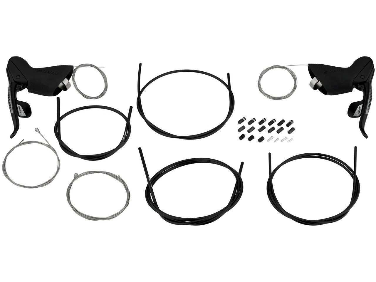 Lieferumfang:1 Paar Schalt-/Bremsgriffe SRAM Rival DoubleTap (rechts und links)2 x Schaltinnenzug SRAM2 x Schaltaußenzuginkl. Endtüllen und Endkappen