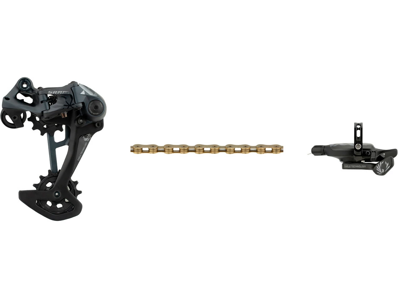 Schaltwerk:lunar (dunkelgrau)Schaltgriff:lunar (dunkelgrau)Kette:nach Wahl XX1 rainbow (bunt), XX1 copper (kupferrot), XX1 gold, XX1 blackHerstellernummern:Schaltwerk: 00.7518.139.000Schaltgriff: 00.7018.435.000Kette: 00.2518.039.010 (XX1 rainbow), 00.2518.043.010 (XX1 copper), 00.2518.024.020 (XX1 gold), 00.2518.024.021 (XX1 black)Lieferumfang:1 x Schaltwerk SRAM XX1 Eagle1 x Schaltgriff SRAM Trigger XX1 Eagle 12-fach1 x Kette SRAM PC XX1 Eagle1 x Kettenschloss SRAM PowerLock1 x Klemmschelle SRAM1 x Schaltzug SRAM 2200 mm1 x Einstelllehre SRAM Chain Gap Adjustment GaugeDirekt mitbestellen:Schaltzugaußenhülle